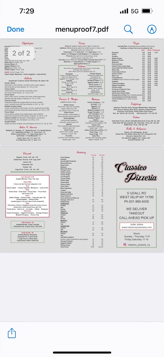 Welcome to Classico Pizzeria, where tradition meets taste nestled in the heart of West Islip. Famous for its inviting atmosphere, this pizzeria serves up a delightful range of pizzas that leave a lasting impression. Highlights from the menu include the Tri-Color Grandma Pie, a favorite among patrons, and the unique Classico Hero – chicken Francese with mozzarella and hot cherry peppers that truly shines.